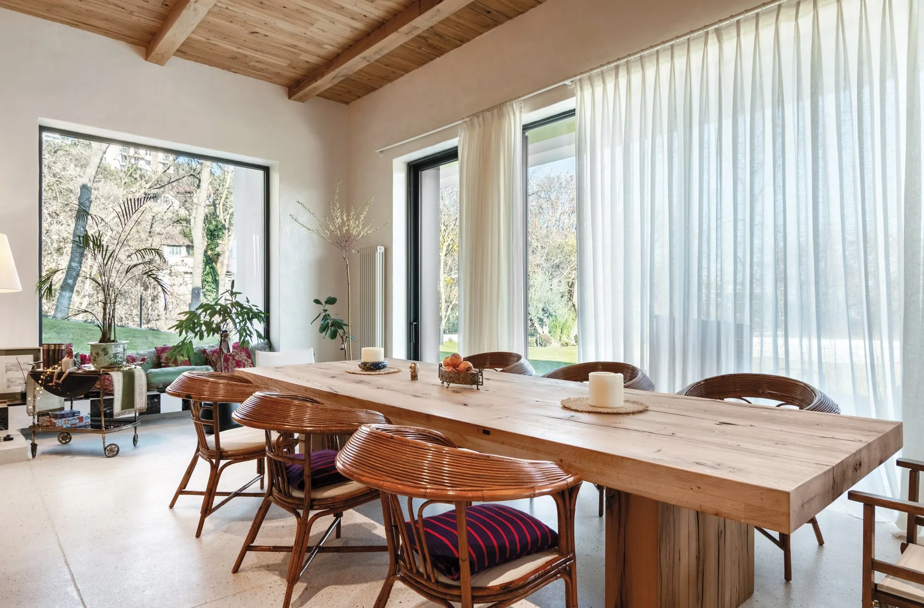 This house was an interesting and important project for us, as we designed not only its architecture but also the interior. When you design the interior of a building you have designed yourself, from the very beginning you think about the relationship between the exterior and interior spaces and consider them as a single, unified organism. This is precisely why elements of the exterior are brought into the interior.